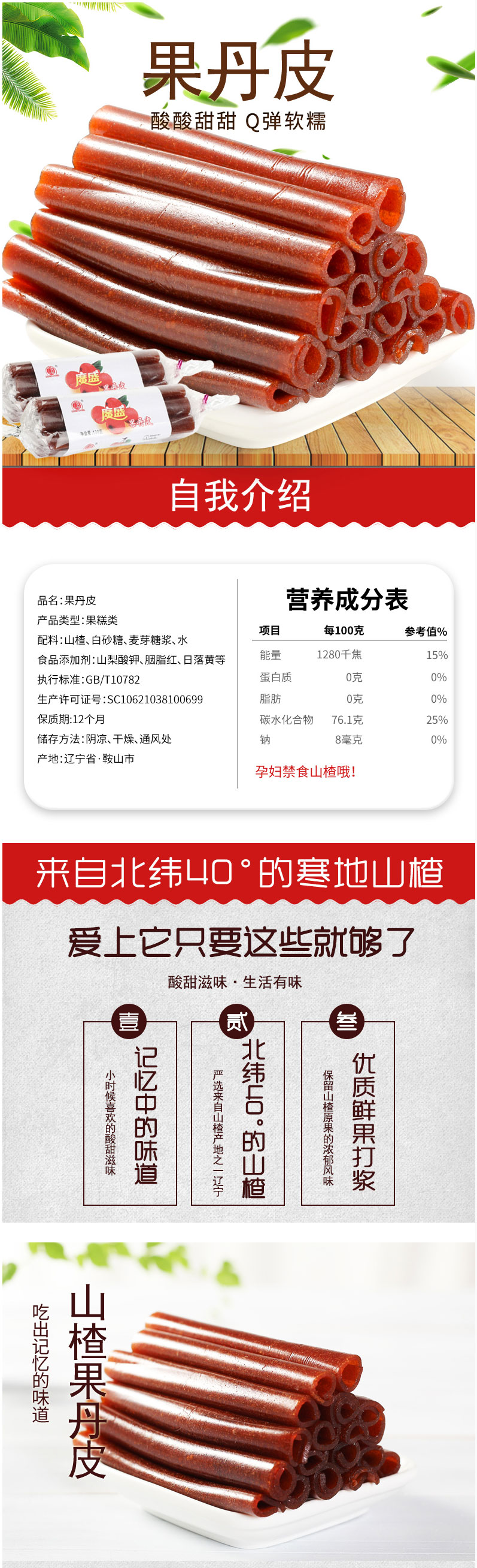 廣盛果丹皮100gX5袋小時候山楂卷大片懷舊兒童果脯休閑零食組合