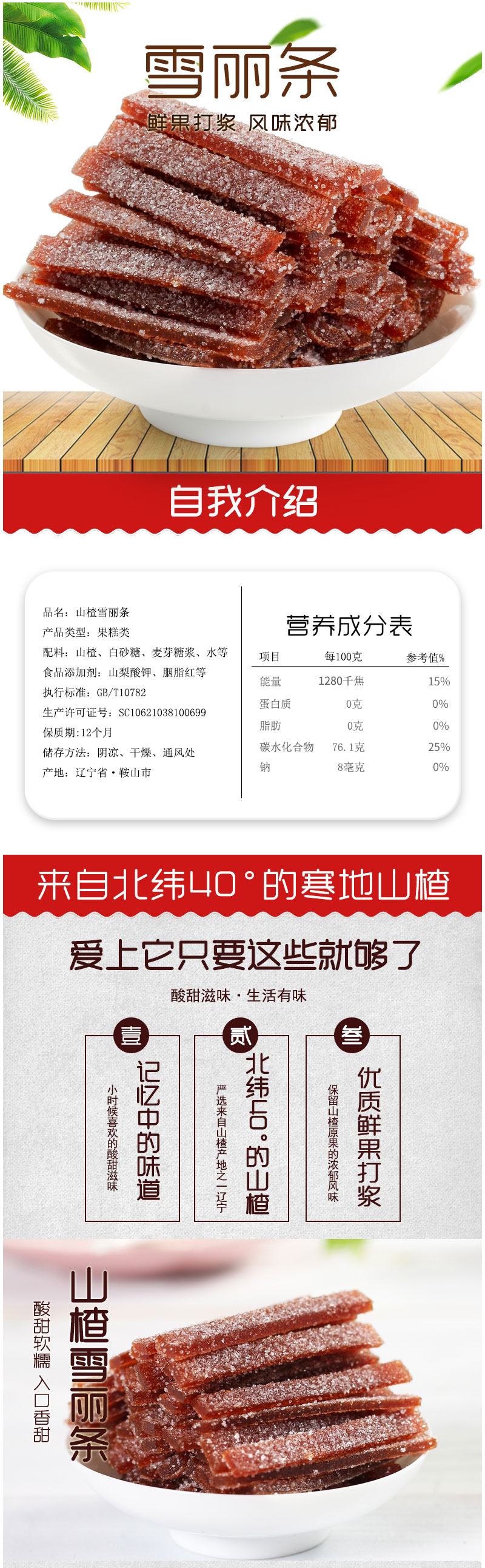 廣盛 山楂雪麗條果丹皮干兒童休閑零食品蜜餞果脯500g東北特產(chǎn)